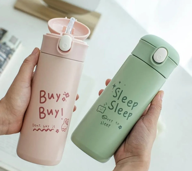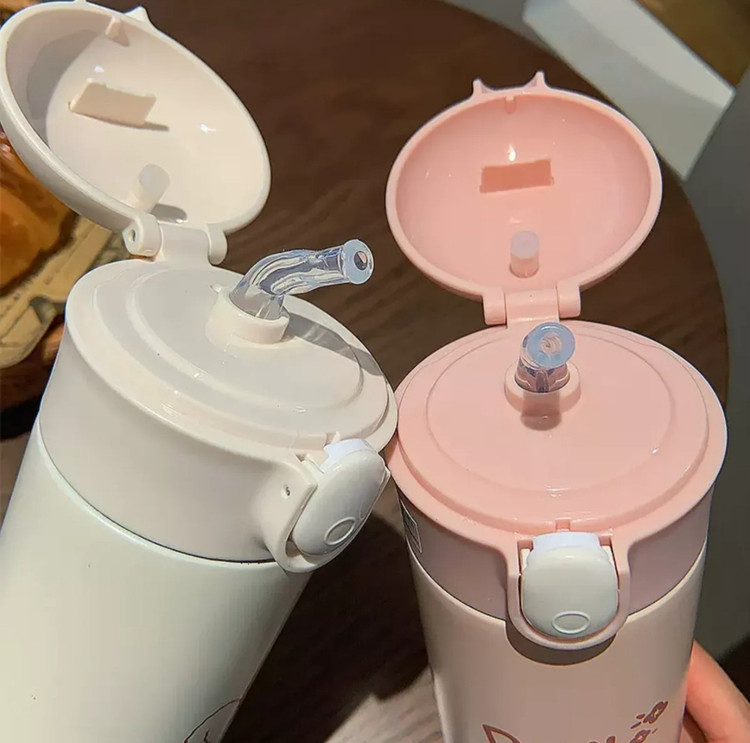 فلاسک و قمقمه بچگانه صورتی رنگ (تراول ماگ) با لبی دوسر نوش 400 میلی لیتری