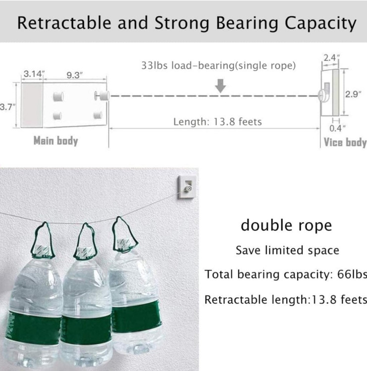 ✅【ظرفیت】- خط خشک کن لباس قابل تنظیم تا 4.2 متر (13.8 فوت) گسترش می یابد، دارای طناب های دوتایی است و می تواند 20 کیلوگرم (44 پوند) را برای هر خط تحمل کند. شما می توانید طول مورد نیاز خود را با توجه به اندازه اتاق تنظیم کنید و نگران نباشید. لباست دیگر افتاد!