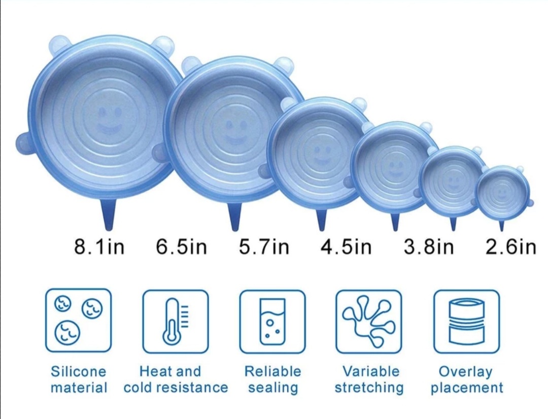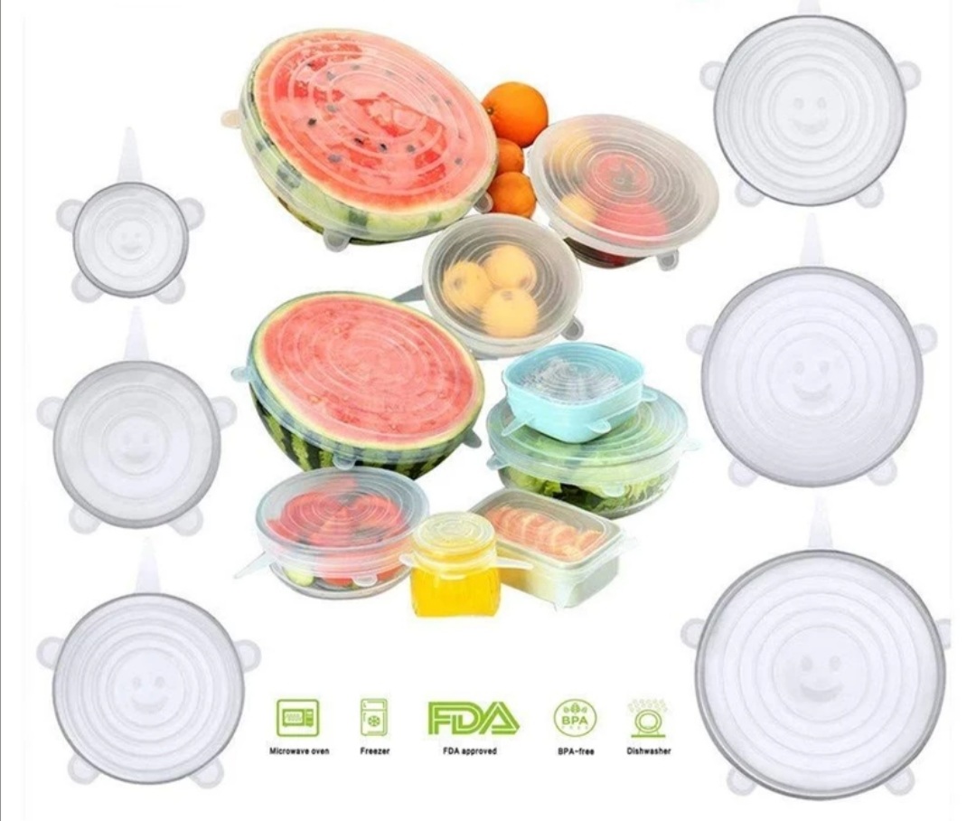 درپوش محافظ غذا از جنس رپوش های سیلیکونی با مقاوت حرارتی و قابلیت انعطاف پذیری فوق العاده در 6 سایز متفاوت، تقریبا تمام ظروف آشپزخانه شما را پوشش می دهند. این محصول بر روی انواع ظروف با شکل های مختلف به راحتی قرار گرفته و از تبادل هوای میان محیط و محتویات ظرف جلوگیری می کند تا طراوت و تازگی غذا،سالاد،سبزیجات ،میوه ها و …حفظ شود. همچنین قابل استفاده در فریزر و مایکروویو است. این محصول قابل شستشو است و می توان آن را در ماشین لباسشویی و ظرفشویی شست.