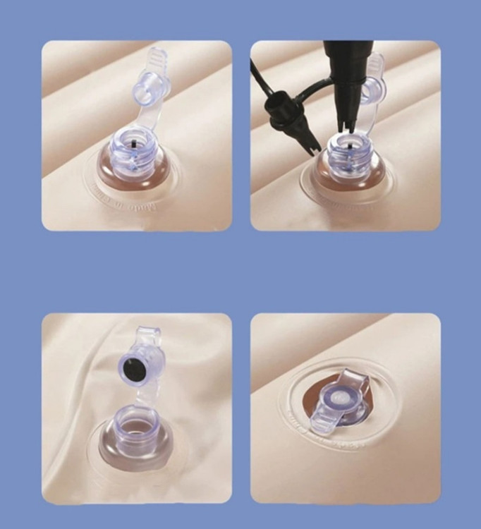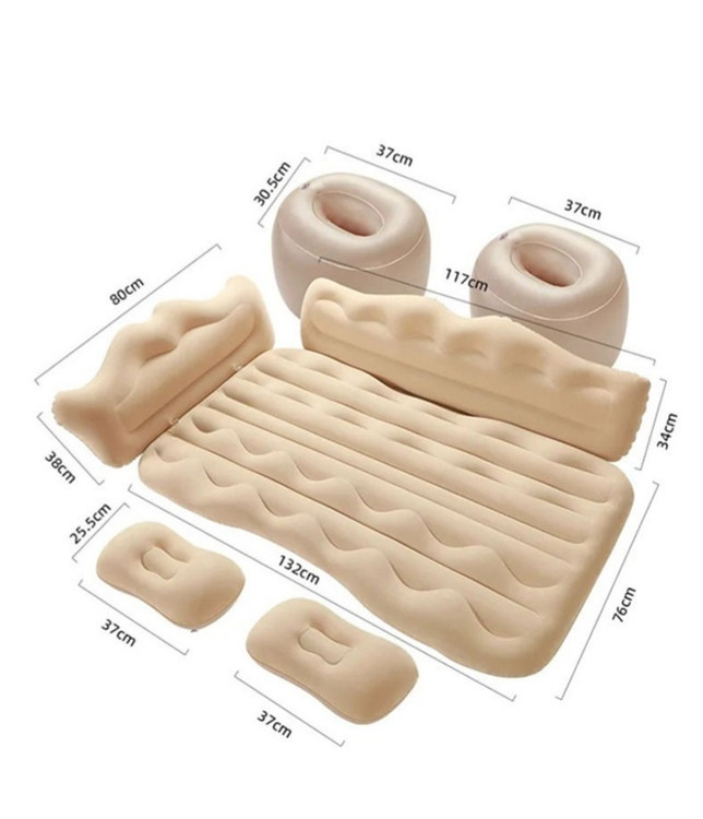 در بستهبندی این محصول یک پمپ باد فندکی مخصوص خودرو وجود دارد که با اتصال به جا فندکی ماشین در کمتر از ۵ دقیقه تشک را باد میکند. همچنین پس از تخلیه باد، بهراحتی تا شده و در کیفی جمعوجور قرار میگیرد که فضای کمی اشغال میکند و بهراحتی قابل حمل است.