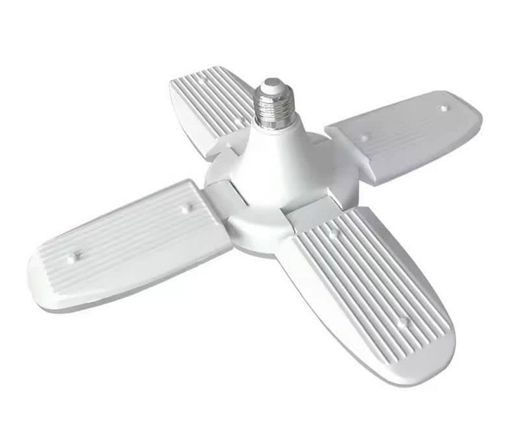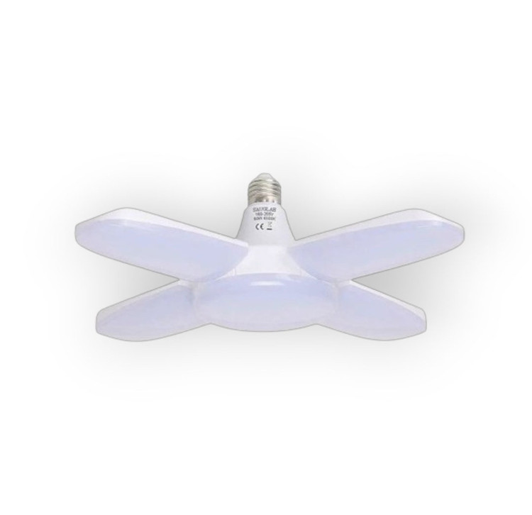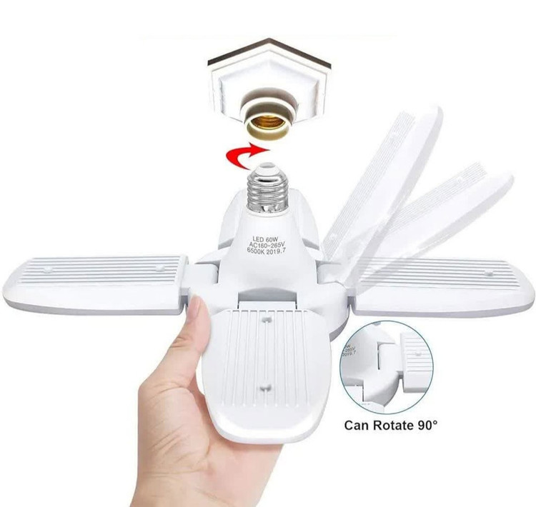 لامپ LED تاشو 60 وات با طراحی 4 پره قابل تنظیم، نور فوقالعادهای معادل 6800 لومن را در رنگ سفید روز (6500K) فراهم میکند.