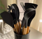 سرویس کفگیر و ملاقه ۱۲ پارچه با دسته چوب بامبو مدل کیچن ست