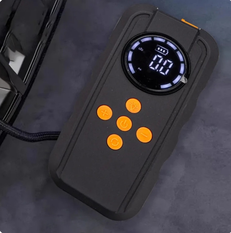 پمپ باد (Air Pump / Air Compressor) حداکثر فشار: 150 PSI <br> سرعت باددهی: ≈ 20 لیتر در دقیقه <br> زمان لازم برای باد کردن لاستیک خودرو: تقریباً 5–7 دقیقه