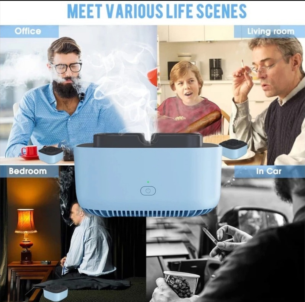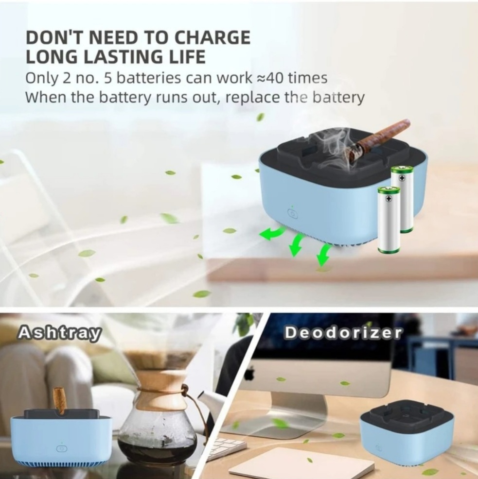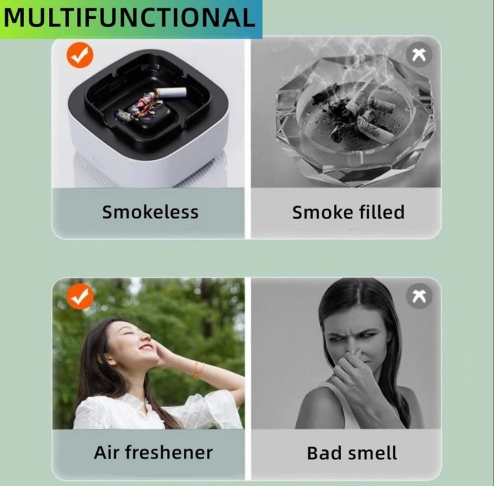 سیگار به اندازه کافی برای ما مضر است ولی با این حال نیمی از ضرر دود سیگار متوجه اطرافیان ماست.این محصول با جذب دود سیگار و فیلتر کردن آن، تا حدود زیادی بوی ناخوشایند و سموم سیگار را فیلتر میکند و مانع از ضرررسیدن به اطرافیان میشود. زیرسیگاری مکنده و فیلتر دار هوشمند دارای فن مکنده دود سیگار ،محل قراردادن سیگار روشن و همچنین محل ریختن خاکستر و ته سیگار است و با دارا بودن 3 فیلتر مختلف غبار گیر و کربن اکتیو ابری و کربن اکتیو فشرده، بوی سیگار و دیگر بوهای محل را میگیرد که نقش بوگیر و تصفیه هوا را دارد.همچنین این فیلتر ها باکتری و گرد و غبار را نیز فیلتر میکنند.در اینصورت شاهد هوایی پاکتر برای خود و اطرافیان خواهید بود.این محصول نیازی به برق ندارد و با دو عدد باتری قلمی مدت زیادی کار میکند.همچنین جنس بدنه از پلاستیک ABS میباشد و میتوان در آن از رایحه های خشبو کننده نیز استفاده کرد.