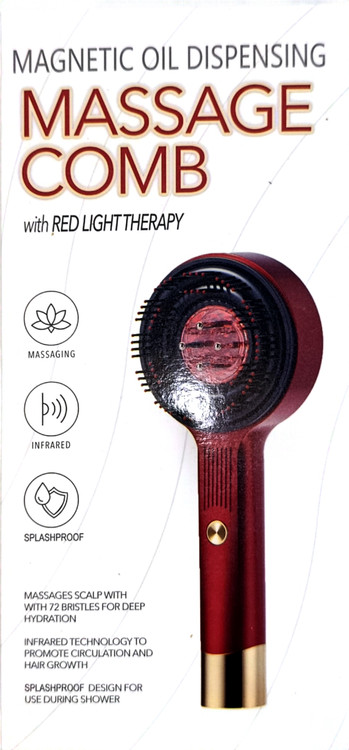 شانه ماساژ مغناطیسی روغنرسان مدل XC-901 با نوردرمانی قرمز - قابل شارژ تایپ-سی ضدآب
