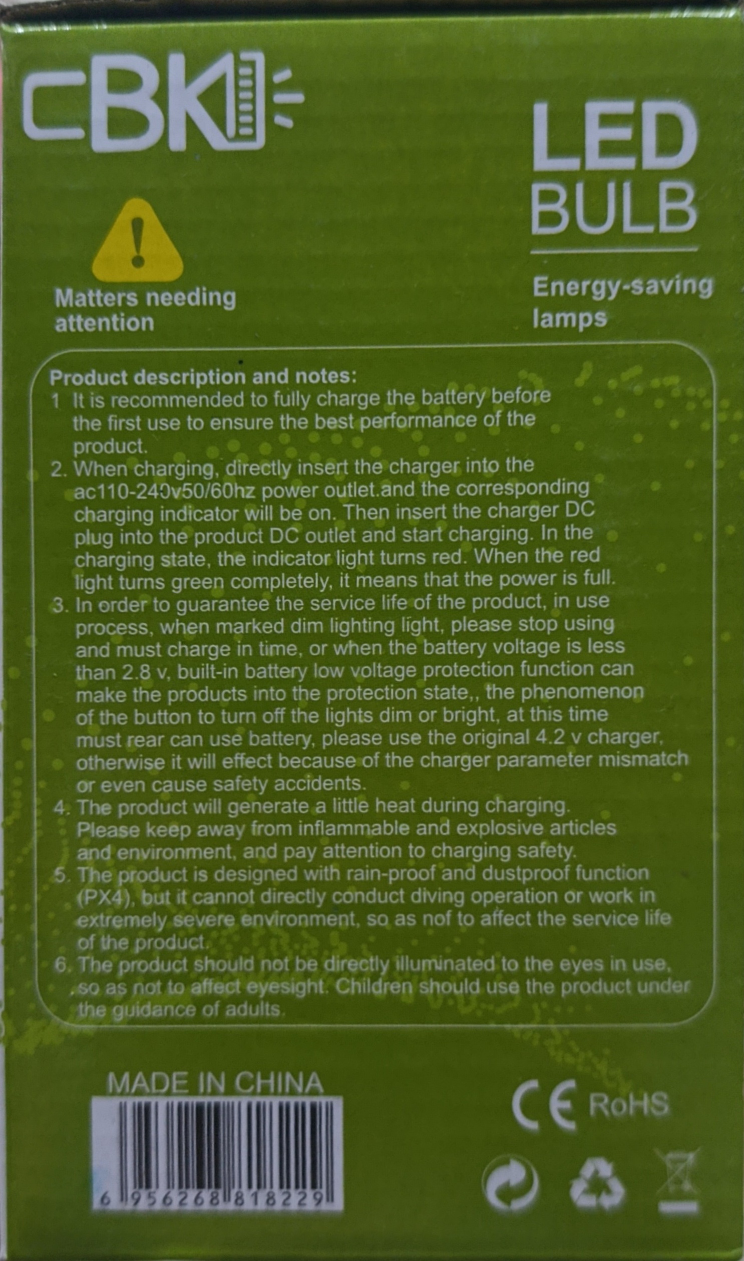 6. هشدار: از شارژر غیراصلی استفاده نکنید. در صورت کم شدن نور، نسبت به شارژ مجدد اقدام کنید
