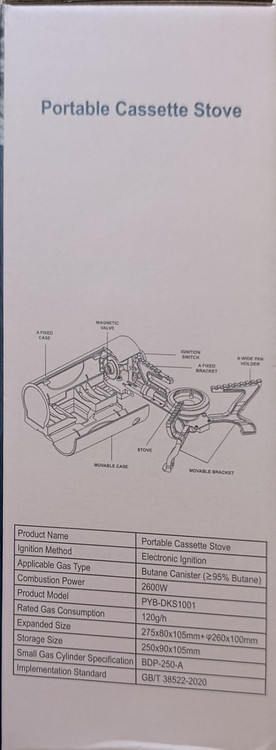 اجاق گاز کمپینگ پرتابل مدل PYB-DKS1001 - اجاق گاز کارتریجی تاشو با قدرت ۲۶۰۰ وات، شیر مغناطیسی ایمن و جرقهزن الکترونیک