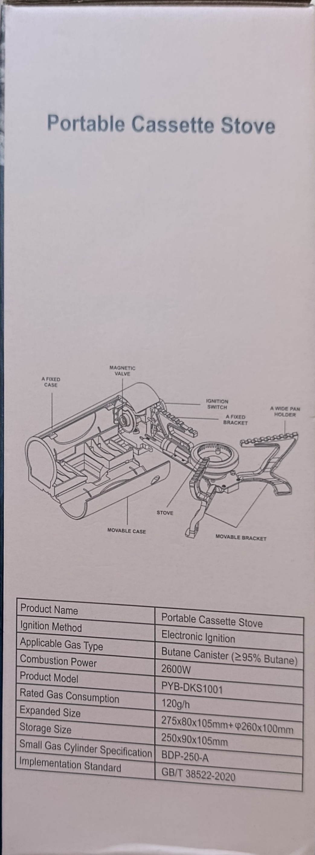 اجاق گاز کمپینگ پرتابل مدل PYB-DKS1001 - اجاق گاز کارتریجی تاشو با قدرت ۲۶۰۰ وات، شیر مغناطیسی ایمن و جرقهزن الکترونیک