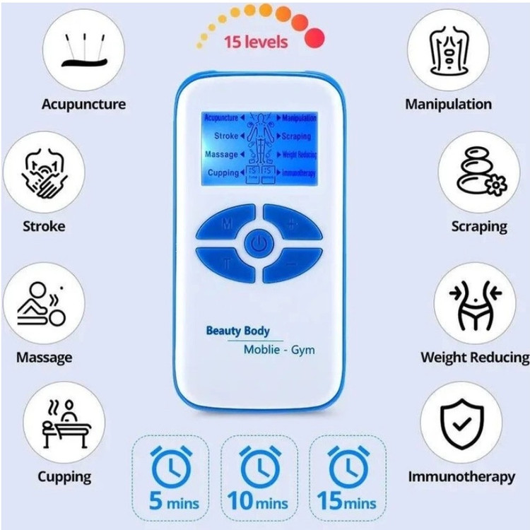 دارای صفحه نمایش دیجیتال دارای 8 حالت ماساژ دارای 15 درجه قدرت قابل تنظیم دارای سه حالت تایمر 5-10-15 دقیقه قابلیت استفاده با برق مستقیم و یا استفاده با باتری(3 عدد باتری نیم قلم) قابلیت استفاده هر 8 پد به صورت همزمان دارای دو کانال خروجی دارای 8 عدد پد(4 جفت) اقلام همراه:دستگاه ماساژ،کابل برق تایپ C ، دو عدد کابل رابط پد ،8 عدد پد،کاتالوگ نکته مهم : این محصول قدرت و کیفیت فوق العاده بالایی دارد و با توجه به قیمت مناسب ان انتخابی بسیار مناسب در میان دستگاه های تنس است. روش استفاده لطفا کابلها را در جک خروجی ماساژور قرار دهید و سر دیگر را به درستی به پد ماساژور وصل کنید. لطفاً پد را روی قسمتی که قرار است ماساژ دهید بچسبانید (لطفا ابتدا قسمتی را که قرار است ماساژ دهید تمیز کنید). دکمه خامشو و روشن را فشار دهید تا ماساژور روشن شود. دستگاه مجهز به 8 حالت ماساژ، با توجه به نیازهای فردی، انتخاب آزاد است. هنگامی که محصول شروع به کار می کند، لطفا هر دو قطب صفحه ماساژ را محکم بچسبانید، در صورتی که شدت خیلی ضعیف است یا شدت تشخیص داده نمی شود دستگاه به طور خودکار خاموش می شود. این دستگاه با عملکرد خاموش شدن خودکار 15 دقیقه مجهز شده است و همچنین قابلیت تنظیم زمان در حالت های 5 -10 و 15 دقیقه را دارد. صفحه نمایش زمان کارباقی مانده و نوع ماساژ را نمایش میدهد ، دستگاه به طور خودکار کار را متوقف می کند. نکات قابل توجه *لطفا قبل از استفاده، پد ماساژ را روی پوست بچسبانید و سپس دستگاه را روشن کنید. *در حین استفاده، پد را به شخص یا شخص دیگری منتقل نکنید. *اگر در حین استفاده احساس ناراحتی کردید، لطفاً فوراً استفاده از آن را متوقف کنید. *لطفا در حمام، آشپزخانه و سایر مکان های مرطوب یا گرم استفاده نکنید. * در صورت وجود کثیفی یا گرد و غبار، لطفاً با یک پارچه نرم آغشته به مواد شوینده خنثی پاک کنید و بگذارید به طور طبیعی با تهویه خشک شود. * در مواقعی که استفاده نمی کنید در مکان های گرم مانند کنار اجاق گاز یا آشپزخانه نگهداری نکنید. * در صورت عدم استفاده در مکان مرطوب نگهداری نکنید.