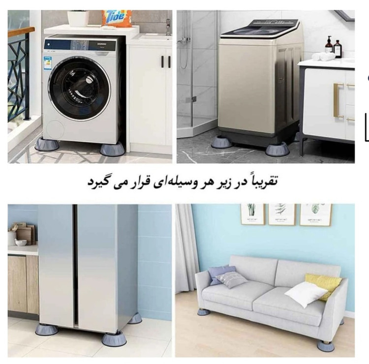 لباسشویی و کف لغزنده جلوگیری می کند. این کار از خراش و سایش جلوگیری می کند. با استفاده از این وسیله بسادگی از لوازم خانگی در برابر خط و خش و همچنین از سطوح محافظت کنید. این پایه تقریباً در زیر هر ماشین لباسشویی قرار می گیرد و همچنین برای پایه های خشک کن، لباسشویی، اجاق گاز، یخچال و فریزر و… مناسب است.
