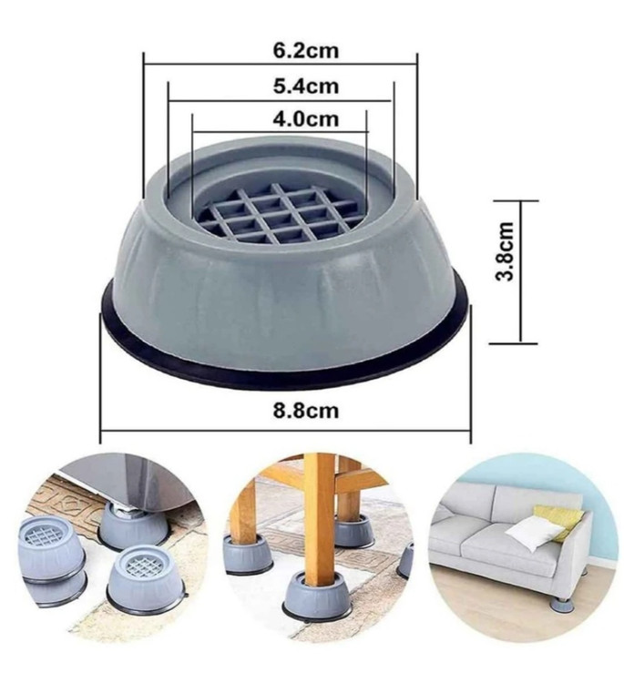 م ساخته شده است. طراحی دو تکه این لرزه گیر می تواند لباسشویی را از تکان خوردن یا راه رفتن محافظت کند. همچنین از آن میتوان به عنوان پایه زیر یخچالی نیز استفاده نمود.