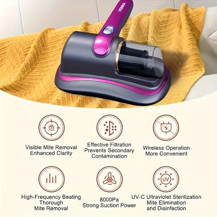 تمیز نگه داشتن مبلمان، تخت خواب، بالشها و صندلیها از انواع گرد و غبار و کنههایی که بر روی پارچهها زندگی میکنند، بخصوص برای کسانی که نگران سلامت کودکان خود هستند، دغدغهای همیشگی است. جارو شارژي ضد کنه، با استفاده از تکنولوژي تولید اشعه UV و قدرت مکندی خوب، همه نوع کنه و گرد و غباری را از روی مبلمان و تخت خود از بین ببرید. دیگر نیازی نیست از جارو برقیهای بزرگ و حجیم برای تمیز نگه داشتن وسایل خواب و راحتی خود استفاده کنید. با این گجت کوچک و دمدست در کمترین زمان تمیزی را به خانه خود ببرید. جارو شارژی ضدکنه جاروی ضد کنه و گرد و غبار با فیلتر هوای HEPA و اشعه UV جارو شارژی با قابلیت از بین برندگی کندهها، گجتی جم و جور و کوچک است که به کمک آن در کمترین زمان ممکن میتوان بالش، تخت خواب و مبلمان خانه را از گرد و غبار و کنههایی با چشم دیده نمیشوند، پاکیزه نمود. این وسیله به کمک تولید اشعه ماورا بنفش، خاصیتی ضد کنه دارد. قدرت مکندی برابر با ۸۰۰۰ پاسکال دارد و باتریاش بطور مداوم تا ۱۵ دقیقه انرژي دستگاه را تامین میکند. وزن این دستگاه کمتر از ۱ کیلوگرم بوده و به راحتی قابل استفاده است. ظرفیت باتری برابر با ۱۵۰۰ میلی آمپر دارد و ولتاژ کاری آن ۱۲ ولت است. درگاه ارتباطی برای شارژ دستگاه از نوع یو اس بی تایپ سی (usb type c) است. ظرفیت محفظهي گرد و غبار این گجت ۱۸۰ میلیلیتر است که مقدار کمی به حساب میآید. با توجه به ابعاد کوچک دستگاه و عملکرد دستیاش،چنین حجمی منطقی به نظر میرسد. جاروشارژی ضدکنه از ویژگیهای منحصربهفرد این جاروی شارژی میتوان به قابلیت تولید اشعه UV برای از بین بردن کنهها و در وجود فیلترهای تصفیهکننده هوا از نوع HEPA اشاره کرد. همچنین توان مکندگی بالا در کنار سطح نویز و صدای پایین کار دستگاه، از دیگر قابلیتهای کلیدی این ابزار به شمار میآید. از معایب این دستگاه میتوان به ظرفیت کم باتری و گنجایش محفظه گرد و غبار آن اشاره نمود. بدین ترتیب برای تمیزکاریهای طولانی و به میزان زیاد مناسب و کاربردی نیست. در مجموع خرید جاروی شارژی ضد کنه برای کسانی مناسب است که دغدغه تمیز نگهداشتن مبلمان، تخت و بالشهای خود را دارند مناسب است. این دستگاه با ویژگی ضد کنه و توان مکندگی بالایی که دارد میتواند در ابعاد محدود و کوچک بسیار کاربردی و راهگشا باشد.