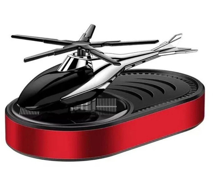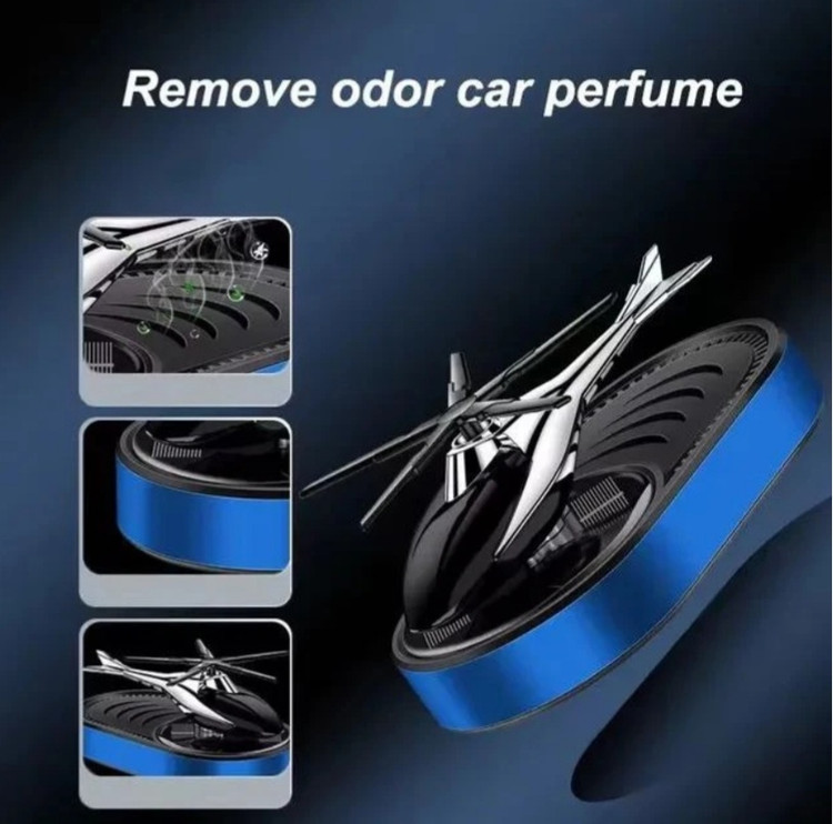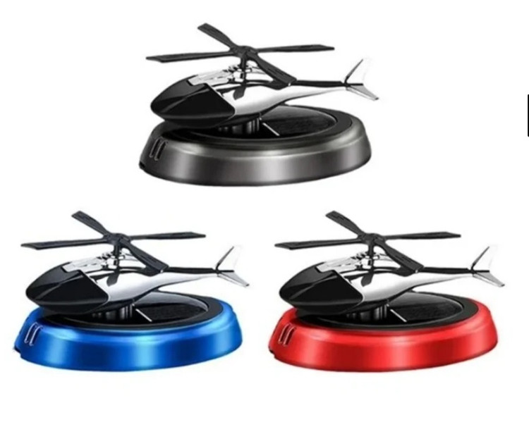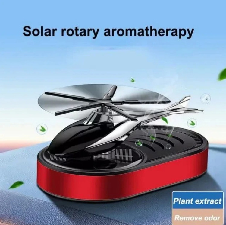 این محصول خاص مدل خورشیدی می باشد که بدون نیاز به باطری با نور خورشید پره های هلیکوپتر شروع به چرخیدن می کند و این محصول را میتوان روی داشبورد یا هر سطح صافی چسباند این محصول دارای اسانس قطره ای خوشبو قوی است که با اتمام اسانس می توان با هر اسانس که خودتون علاقه داشتید شارژ کنید . محصول هم خوشبوکننده است و هم تزیینی که زیبایی خاصی به خودرو شما می دهد